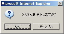 MODEスイッチを押した場合には最初に RUN / STATUS の両LEDが一瞬点灯し、 シャットダウン処理の開始が確認できます。 「MODEスイッチを押す」からシステムのシャットダウンが処理を行って処理が完了すると 最後に STATUS LED のみが点灯している状態になります。 この状態になったら電源を切ることができるようになります。 【システム再起動】画面から【停止】ボタンをクリックしてシステムを停止させた場合にも、 MODEスイッチを押した場合と同様に、シャットダウンが処理を行って処理が完了すると STATUS LED のみが点灯している状態になります。 【停止】ボタンをクリックすると以下の確認用ダイアログが表示されますので、 本当に停止させる場合には【OK】ボタンを、キャンセルする場合には【キャンセル】ボタンを クリックします。